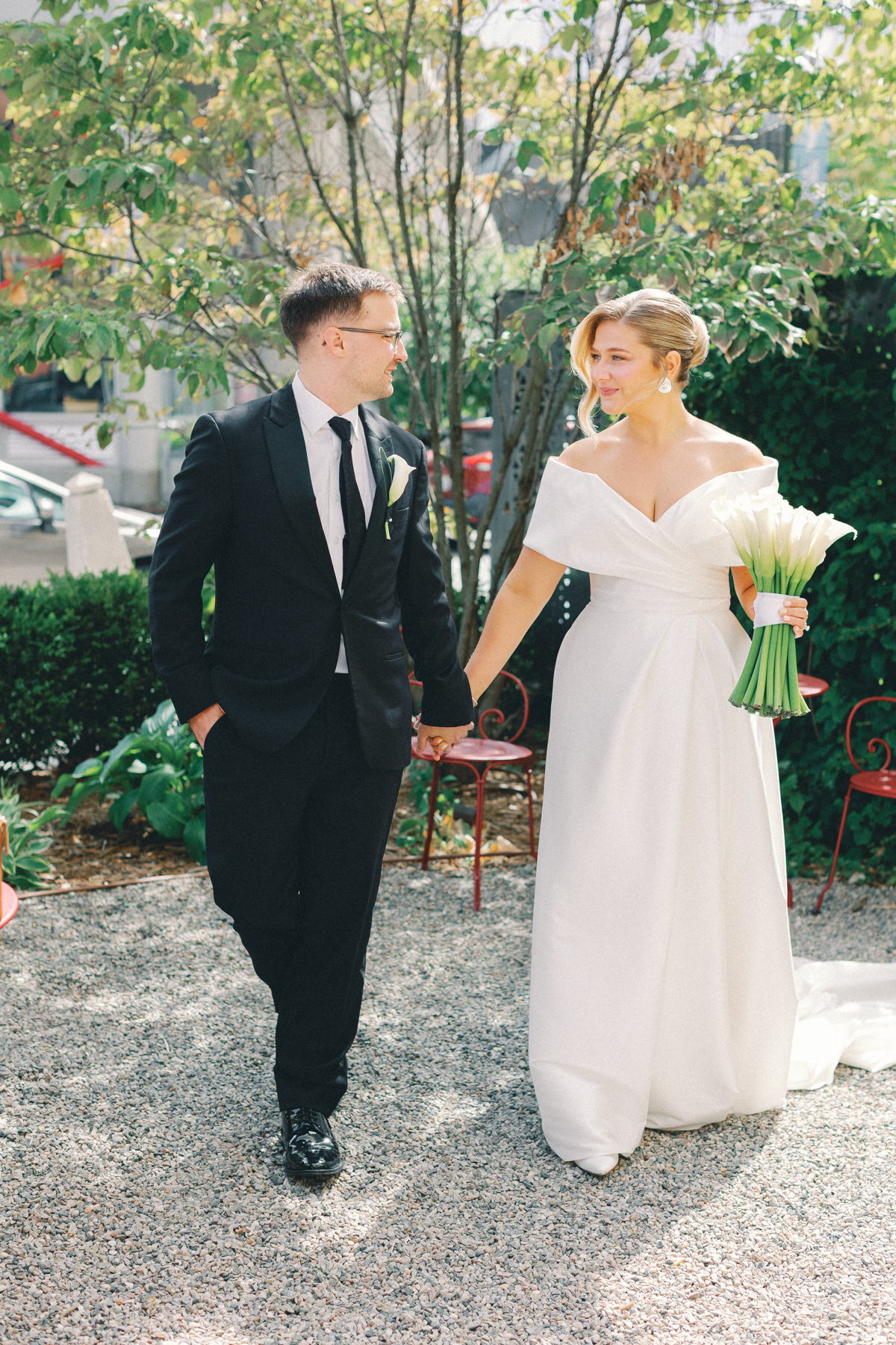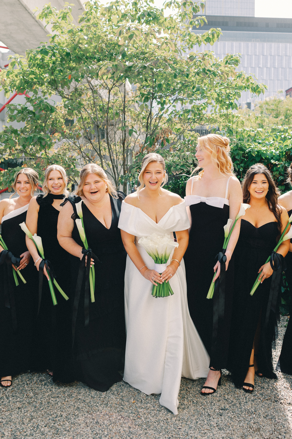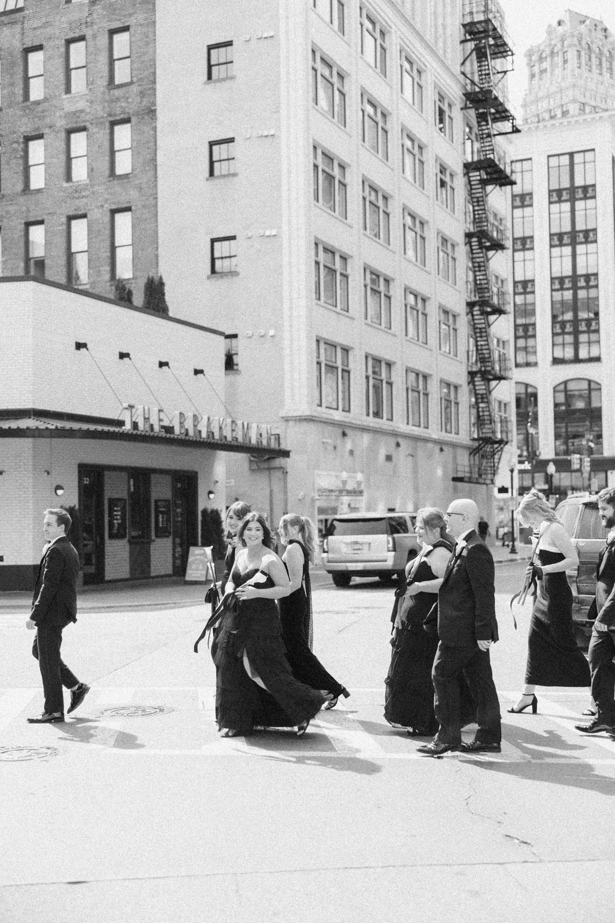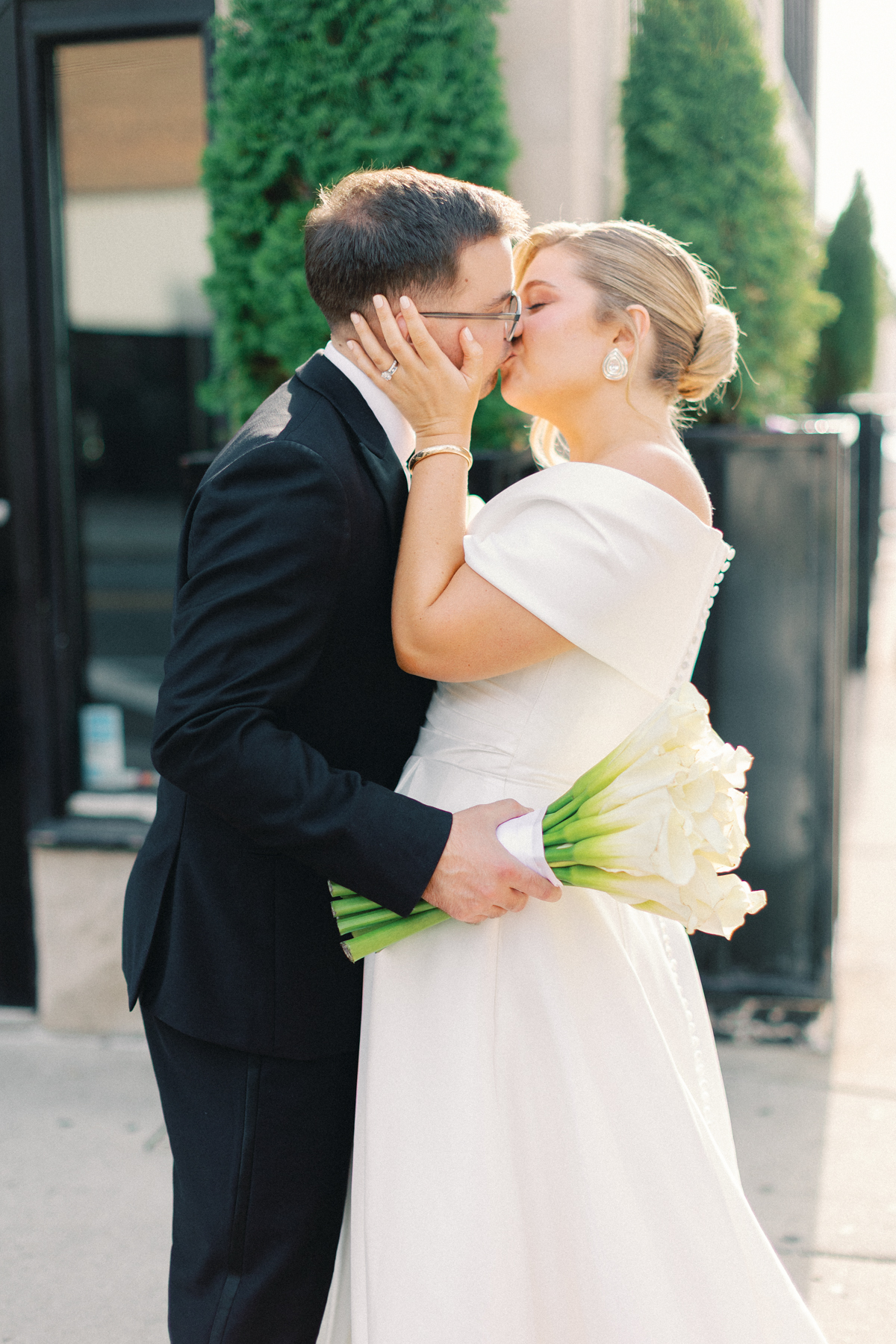 After a private first look in Ashbar, David and Melissa headed out for portraits in the Siren Hotel garden, Shinola Alley and across the city streets. The black, white, and green palette of their wedding style perfectly contrasted against Detroit’s industrial architecture, adding an editorial edge to their portraits.
