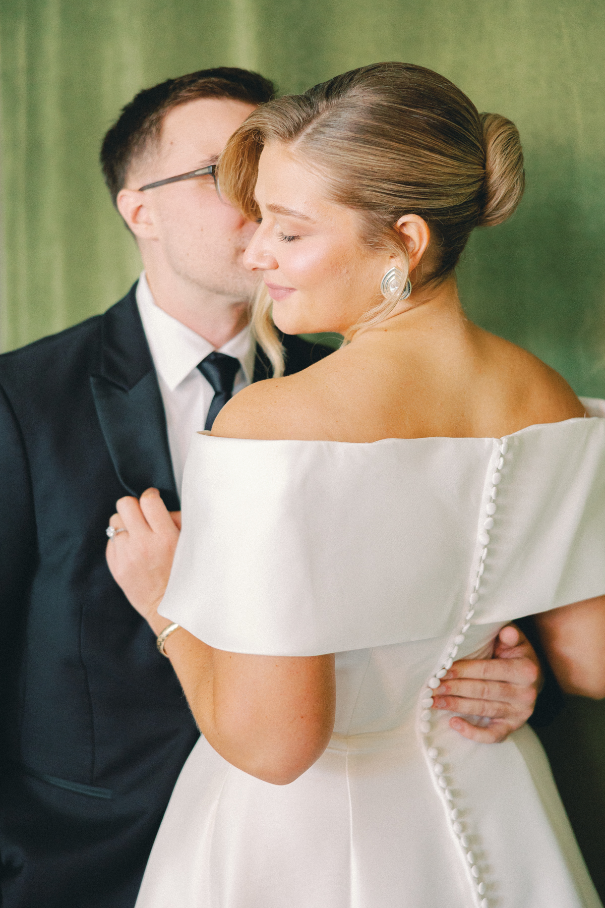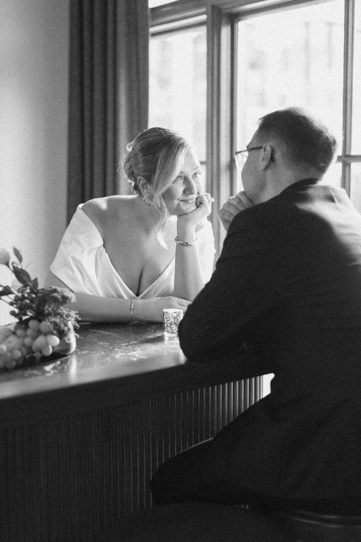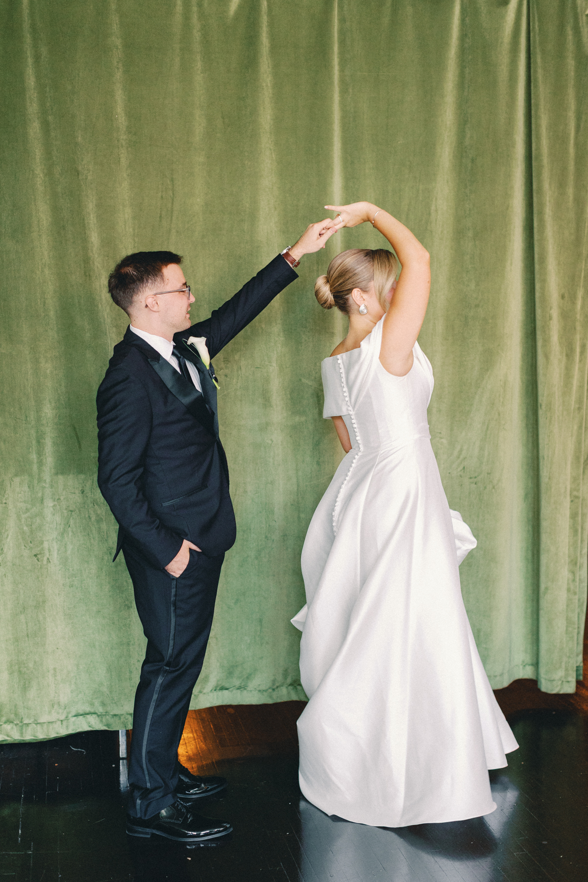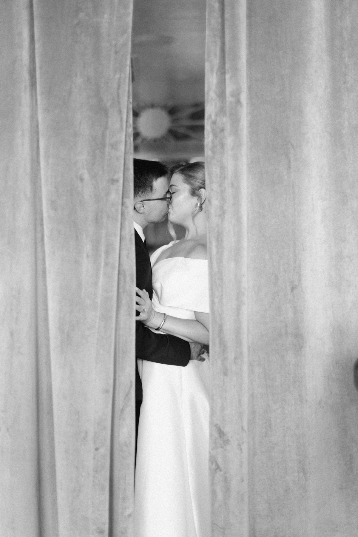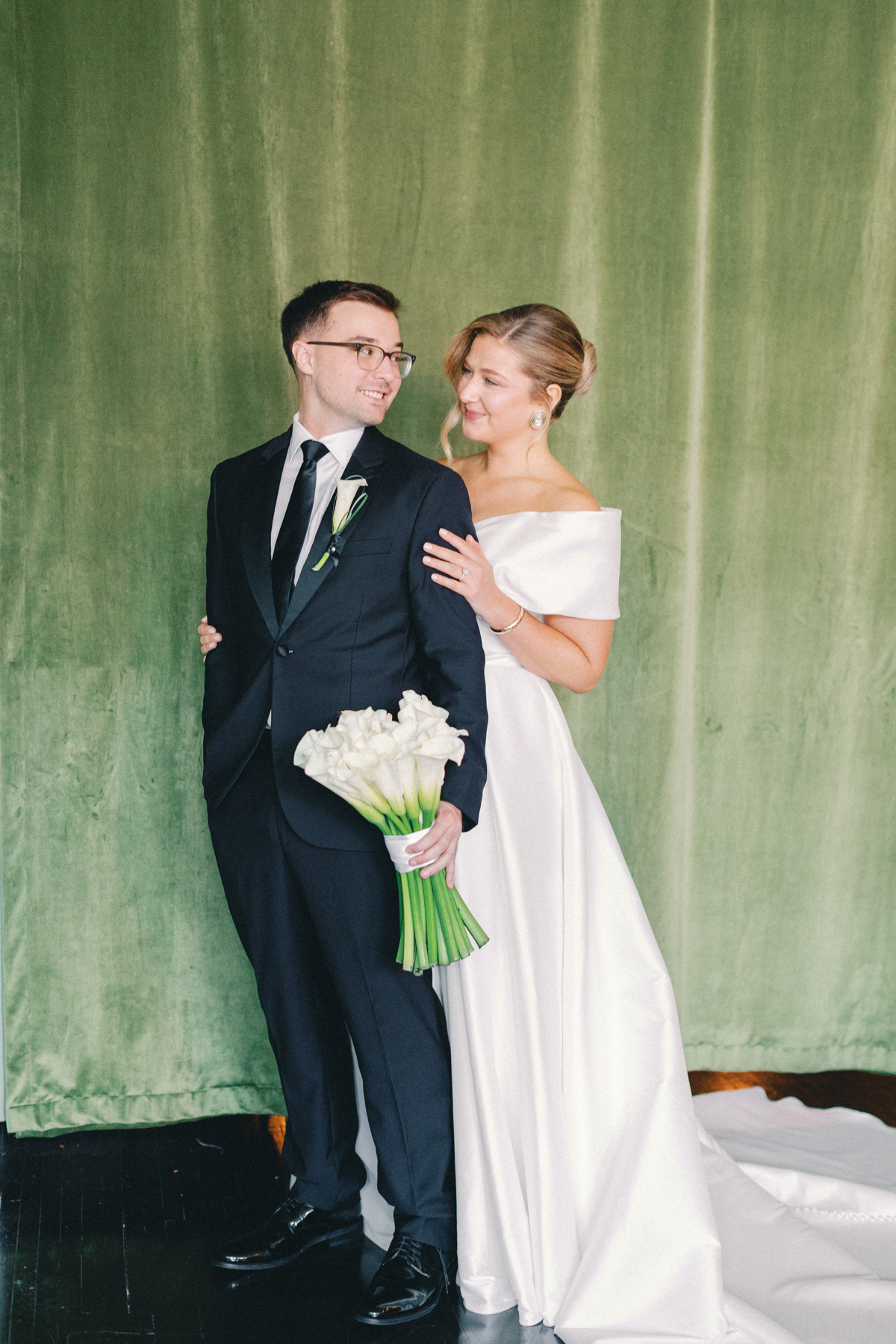 Later, Melissa and David shared their first look in front of the Ashbar’s lush velvet backdrop, an intimate setting that perfectly framed portraits of the two of them before heading into the city for more photos.