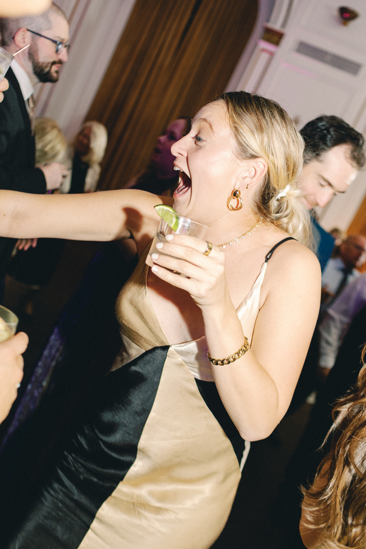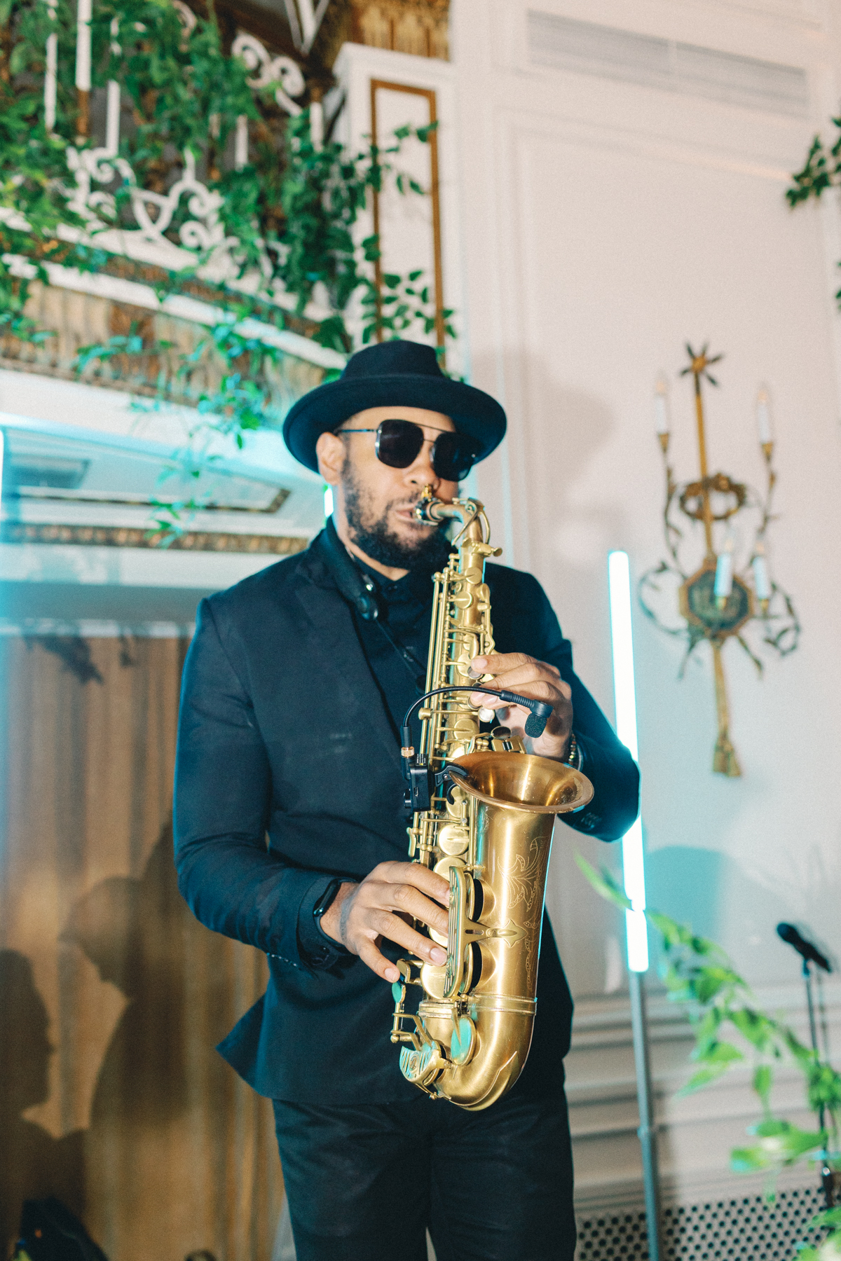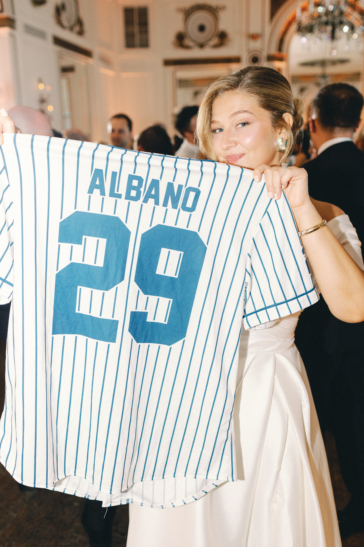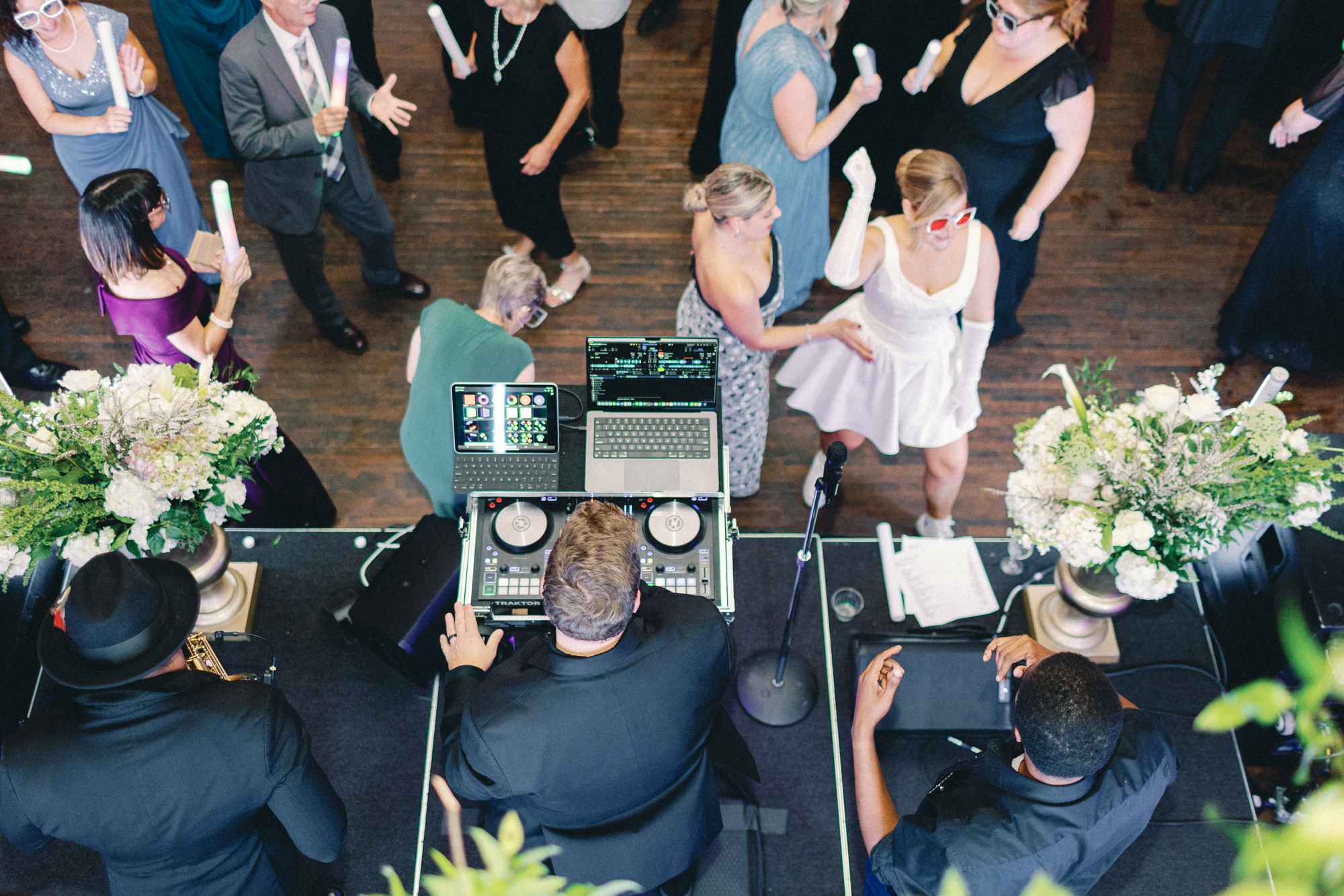 Melissa and David shared their first dance to Can’t Take My Eyes Off of You by Frankie Valli, while an all-Motown cocktail hour playlist and live performances by Ben Sharkey and The Elysium Experience carried Detroit’s soulful energy into the evening. A champagne tower dressed with delicate bows added a playful touch, while greenery cascaded from the balconies where the couple made their room reveal.