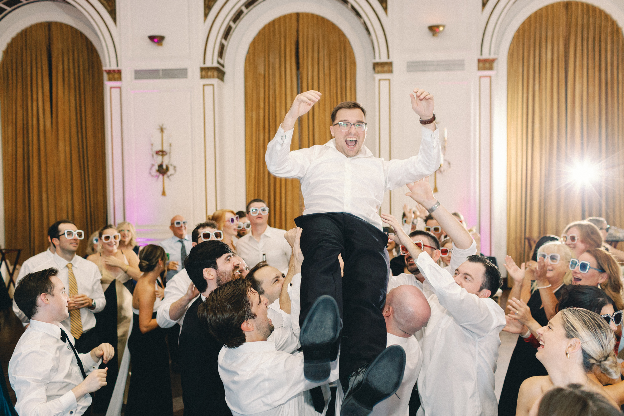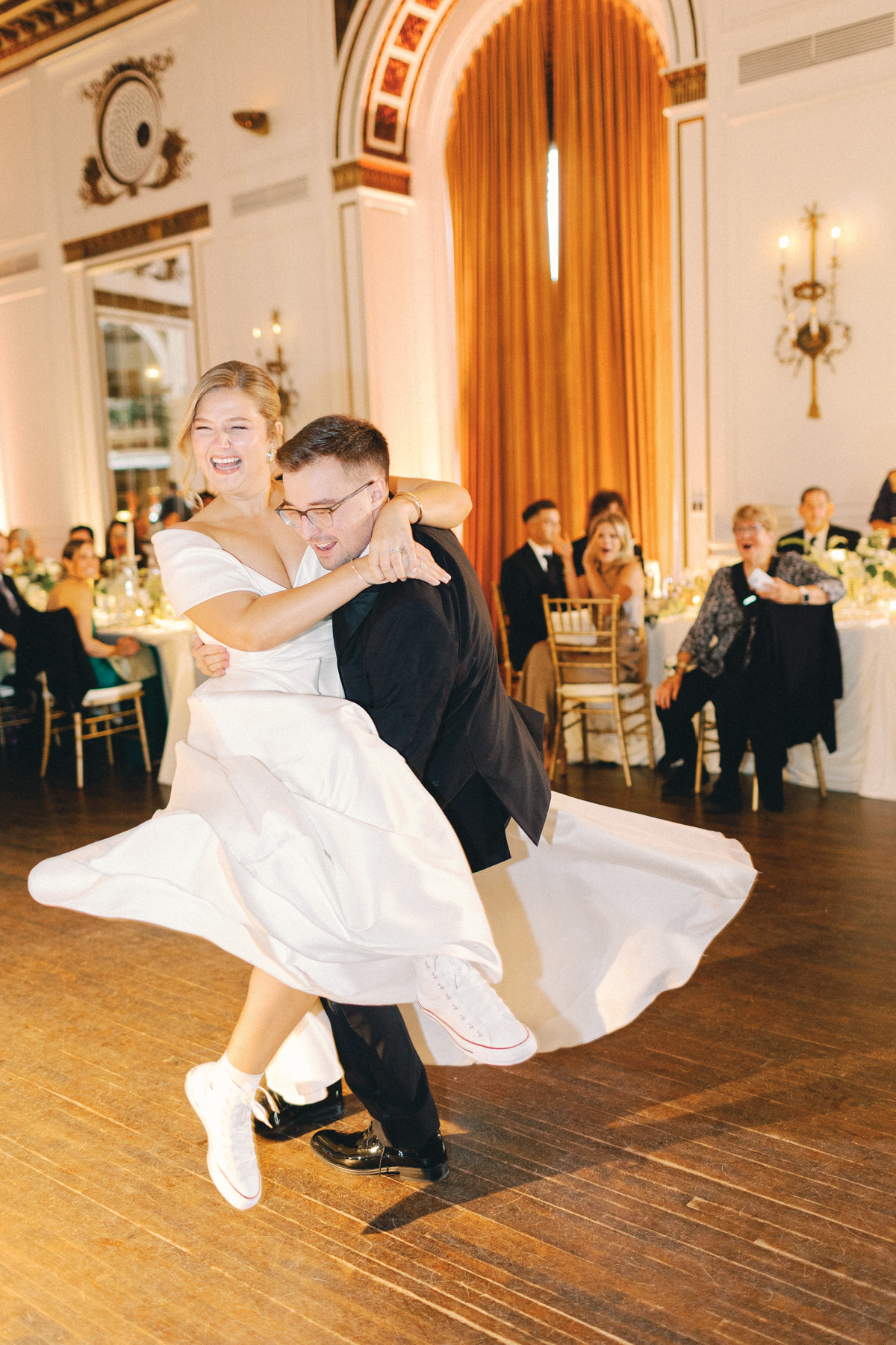 Special details filled the night from slow songs chosen to honor parents’ and grandparents’ wedding songs, to a live painter creating an heirloom artwork of the celebration of the guests. Later in the evening, Melissa surprised everyone by changing into an altered version of her mother’s wedding gown, paired with chic gloves. David brought the party energy with a stage dive into his groomsmen, wrapping up the night in pure joy.
