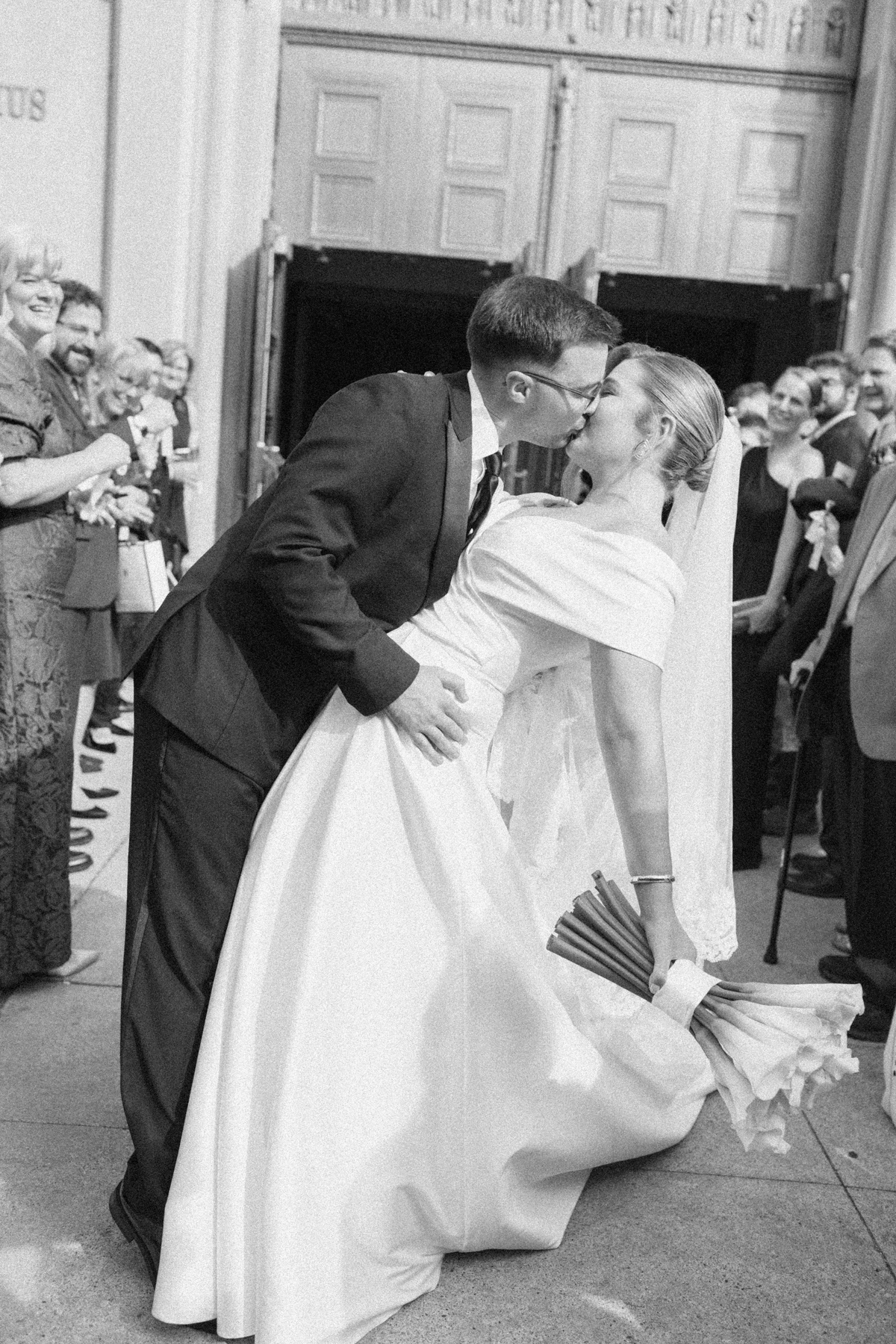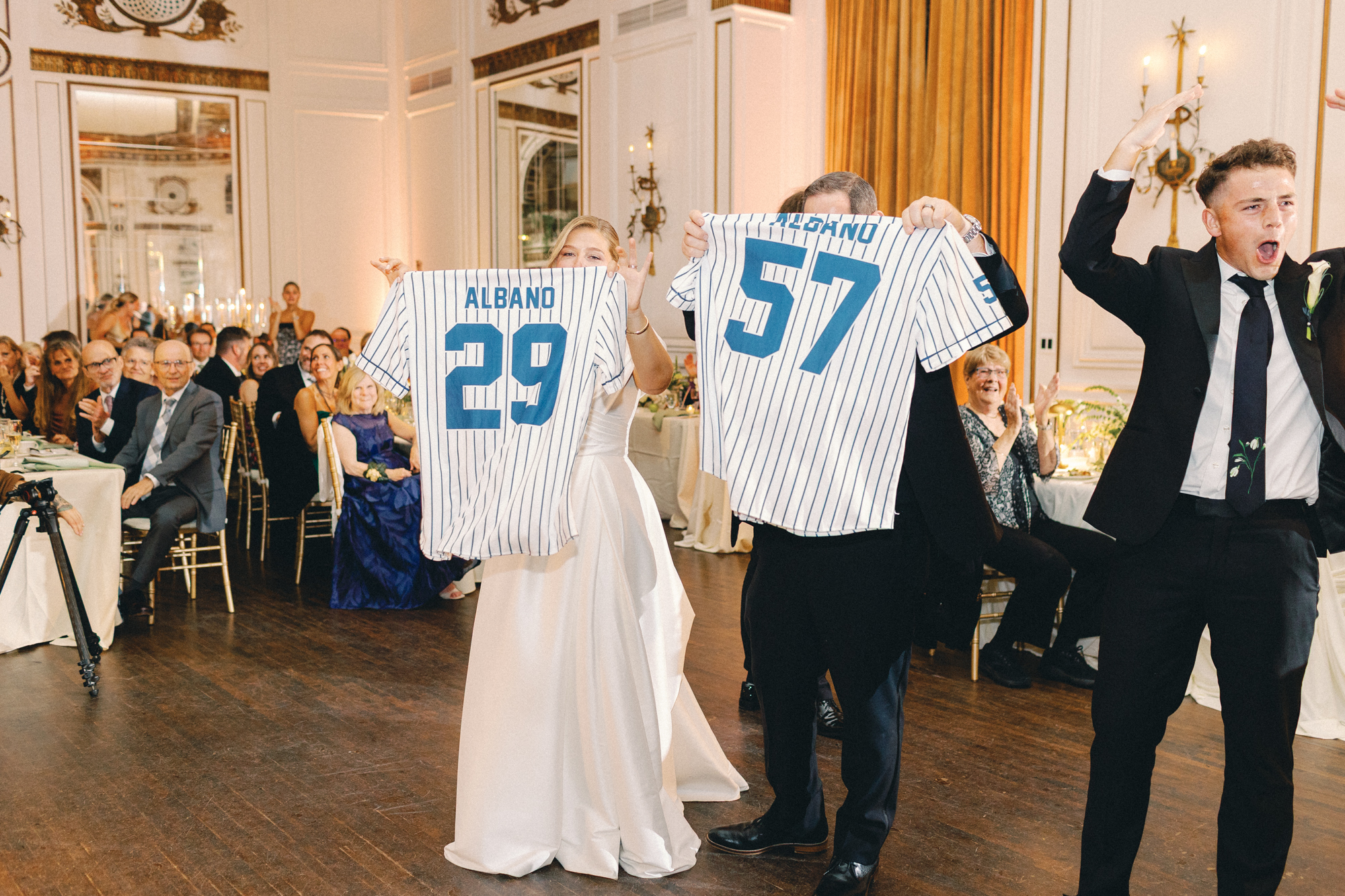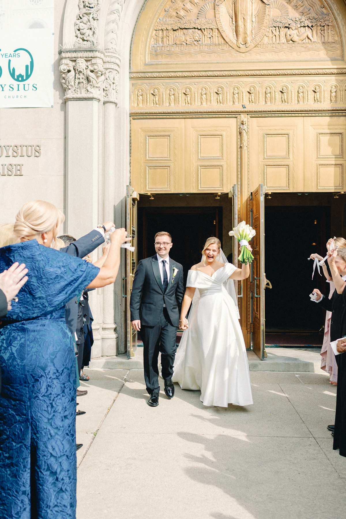 The ceremony was held at St. Aloysius Detroit, a breathtaking church rich with history. Loved ones from near and far read meaningful passages, weaving personal connections into the sacred vows. As the couple exited, wedding bells rang, and Melissa’s father surprised them with a getaway car, setting the tone for the joyful celebration ahead.