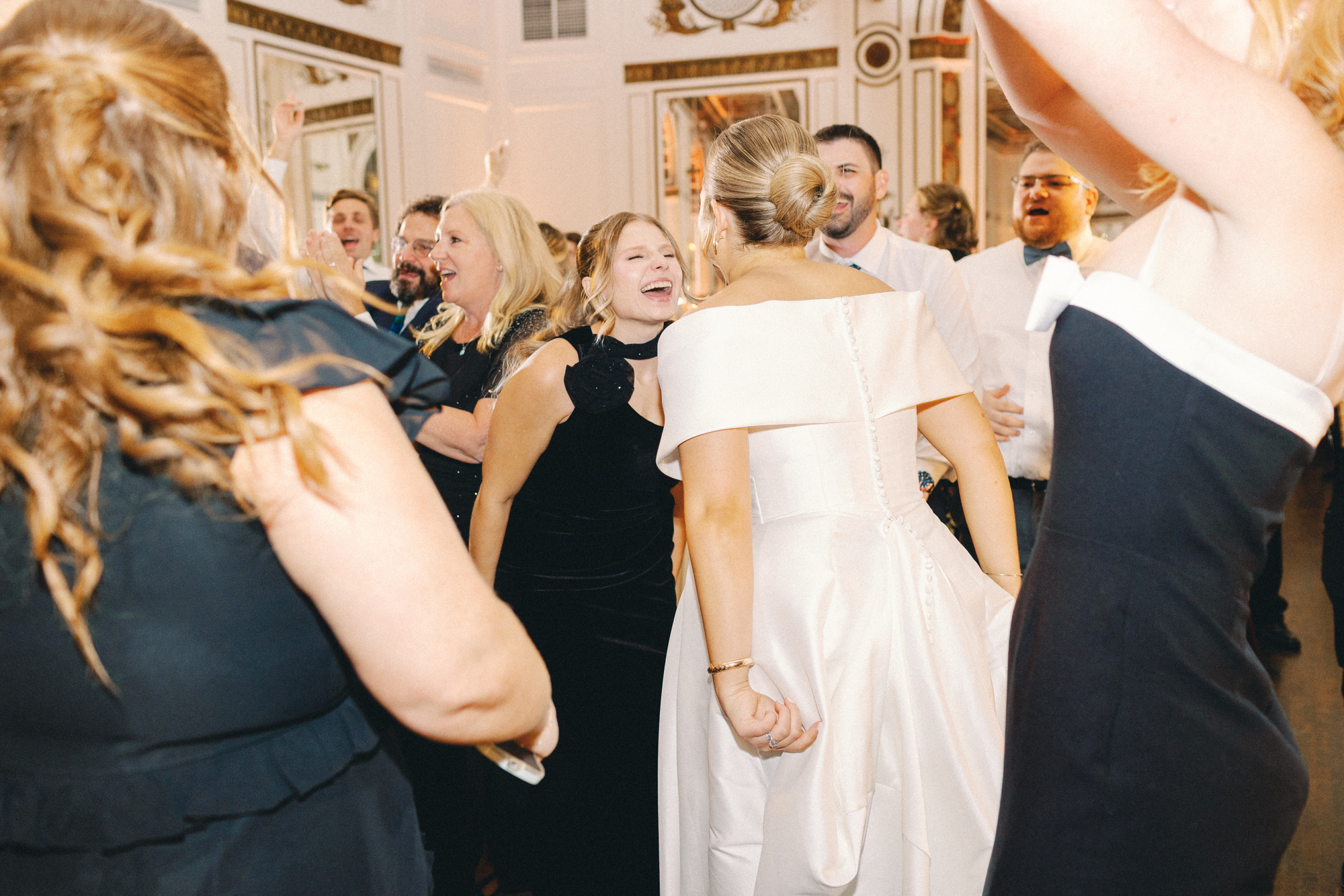 Photographer: Hayley Moore Photography, Ceremony Venue: St. Aloysius Detroit, Reception Venue, Catering, & Cake: The Colony Club Detroit, Planner: K. Adam Events, Florals: The Flower Alley, Dress: Becker’s Bridal, Grooms Tux: The Black Tux, Shoes: Badgley Mischka, Jewelry & Accessories: Nicola Bathie Jewelry, Rings: Jacob Matthew Jewelers, Invitations & Calligraphy: Ainsley & Elaine Paper, Makeup Artist: Ash Beauty, Hair Stylists: Isabella O’Neill Beauty + Kaelee Watts, Entertainment: Ben Sharkey + The Elysium Experience + Sax Appeal Music, Videography: Black Tie White Dress Productions, Desserts: For The Love Of Sugar, Rentals: Modernly Events + LUXE Event Linens, Transportation: Golden Limousine, Live Wedding Painter: Createtingz – Nicole Cunningham